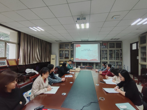 为持续深化理论武装,进一步加强党支部思想政治建设,2025年11月12日下午16:30,英语系党支部在学院资料室召开了本年度第九次集体学习会。会议由党支部书记张寅主持,全体支部党员参加。