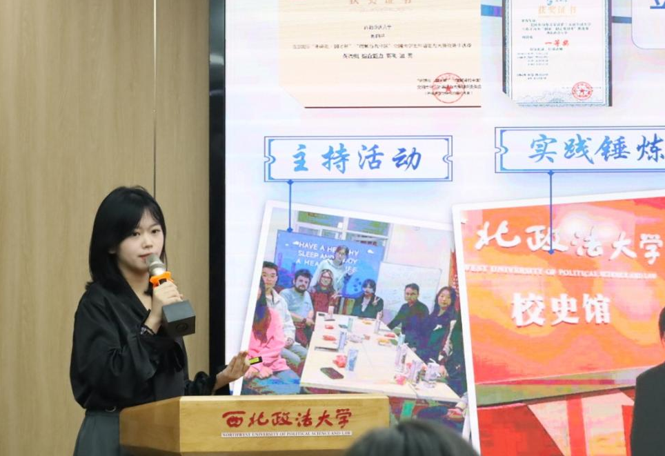 杜雨轩以“让公平在两种语言间无损抵达”为核心主题,从容自信地向评委阐述了其成为跨境诉讼法庭口译员的职业理想。讲述中,她将个人特质与时代需求紧密结合:从主持英语角活动、担任编辑部审稿员所锻炼的表达与严谨,到在创新创业挑战赛、英语讲校史等多项赛事中锤炼的综合素质;从对“一带一路”背景下涉外法治人才缺口的敏锐洞察,到结合港大访学、学术论坛经历所构建的国际视野。其规划路径清晰务实,既有本科、研究生阶段的扎实奠基,也有对未来5-10年持续深耕的深入思考,充分展现了外院学子立足专业、胸怀大局的成长型思维与行动力,获得了评委的认可。