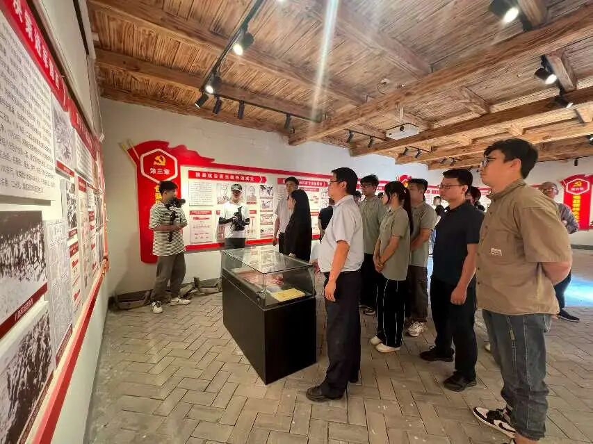 活动伊始,实践团成员来到陕县抗日民主政府旧址接受红色教育,重温革命历史,坚定理想信念。随后,师生一行前往西李村乡人民政府,与地方干部开展座谈交流。会上,双方就资助政策讲解、法治宣传、产业发展等方面深入交流,探讨合作新路径。最后,师生一行深入玉露香梨种植基地调研,为后续的双语直播带货和品牌推广做准备。