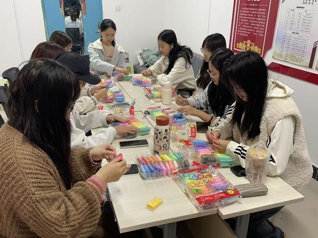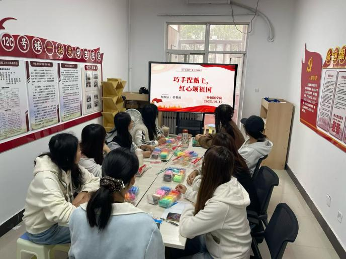 为厚植学生爱国情怀,丰富课余文化生活,10月19日,外国语学院思格“一站式”学生社区举办“巧手捏黏土,红心颂祖国”主题黏土制作活动,本次活动由外国语学院辅导员张远麒组织,2024级部分学生及12C公寓部分学生代表共同参加。