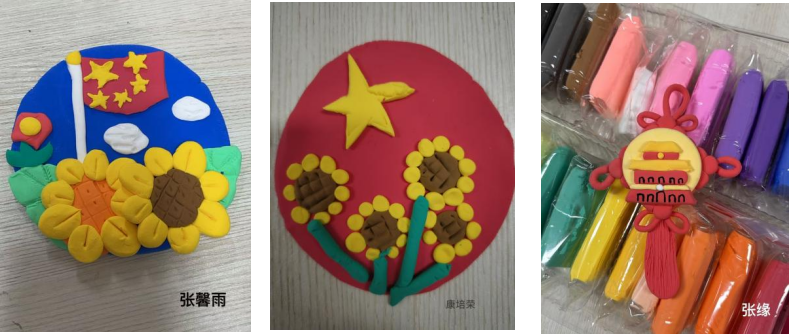 同学们充分发挥创造力,围绕国旗、天安门、党徽等爱国元素展开创作,各位同学一同思考,相互交流技巧、探讨思路。历经近两小时,同学们完成各类主题鲜明的黏土作品,并相互介绍阐述创作理念与对爱国精神的理解。
