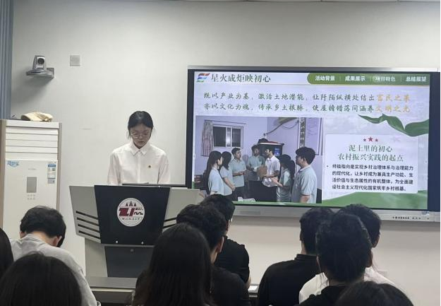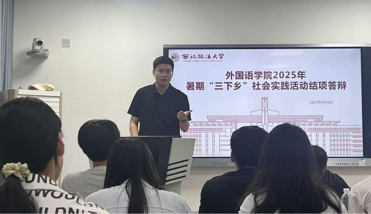 为做好暑期“三下乡”社会实践活动经验总结,表彰在社会实践中表现优秀优秀团队及个人,9月10日下午,学院在5号206教室召开了2025年暑期“三下乡”社会实践活动项目结项答辩会,外国语学院团委书记余瑞、团委副书记张远麒担任答辩评审,学院8支社会实践暑期学生团队参与结项答辩。