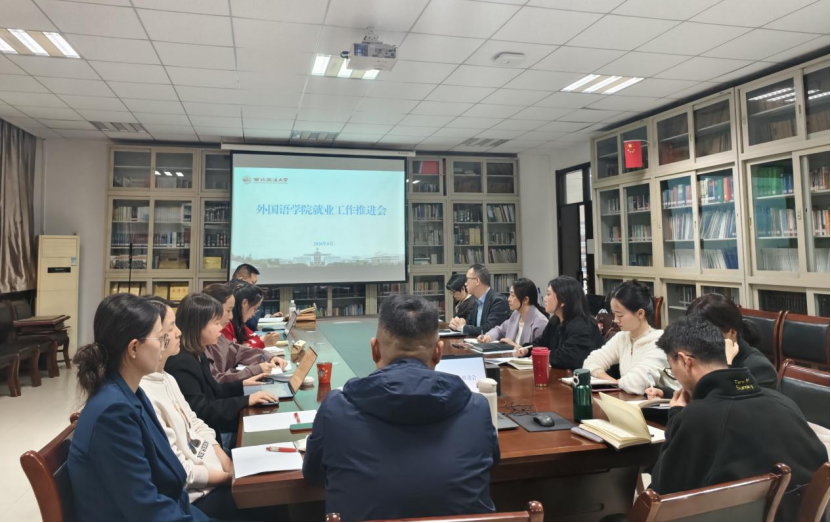 为深入贯彻落实学校关于毕业生就业工作的部署要求,进一步压实工作责任、细化推进举措、提升就业服务质效,全力推动2026届毕业生更高质量更充分就业,4月9日,外国语学院召开2026届毕业生第二次就业工作推进会。学院领导班子成员、各教研室主任、研究生导师代表及全体辅导员参加会议。