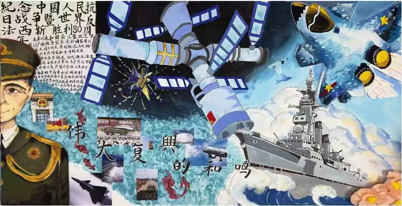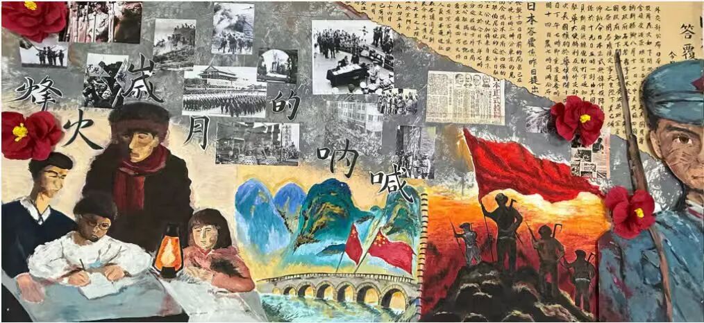 在军训期间,学校开展了“烽火弦歌 青春礼赞”2025级学生军训宣传板报评比活动,我院新生学子创作的《在烽火岁月里呐喊》主题板报荣获三等奖。板报内容以革命峥嵘岁月为主体,通过奋斗的民众,革命标志的地点,以及血战胜利的战士背影和真实照片与画作呼应,再现谋求解放的壮烈征程,勾勒旧中国烽火中“弦歌不辍”的坚韧。