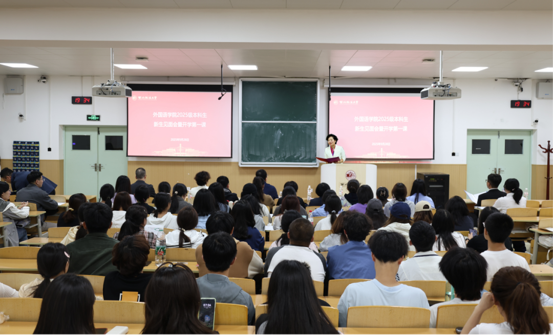 秋光为序,筑梦起航。9月28日晚,外国语学院2025级本科生新生见面会暨开学第一课在天平楼AJ31举行。学院党政领导班子成员、教师代表、辅导员以及全体2025级本科新生参加了本次活动。活动由学院党委副书记、副院长刘瑾主持。