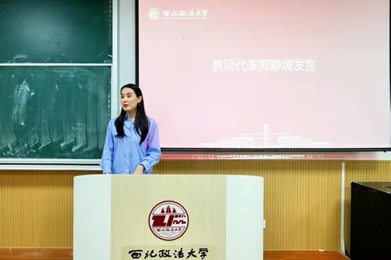 教师代表郭静媛以“融通、探索、成长”三个关键词向新生分享了专业学习的方法。