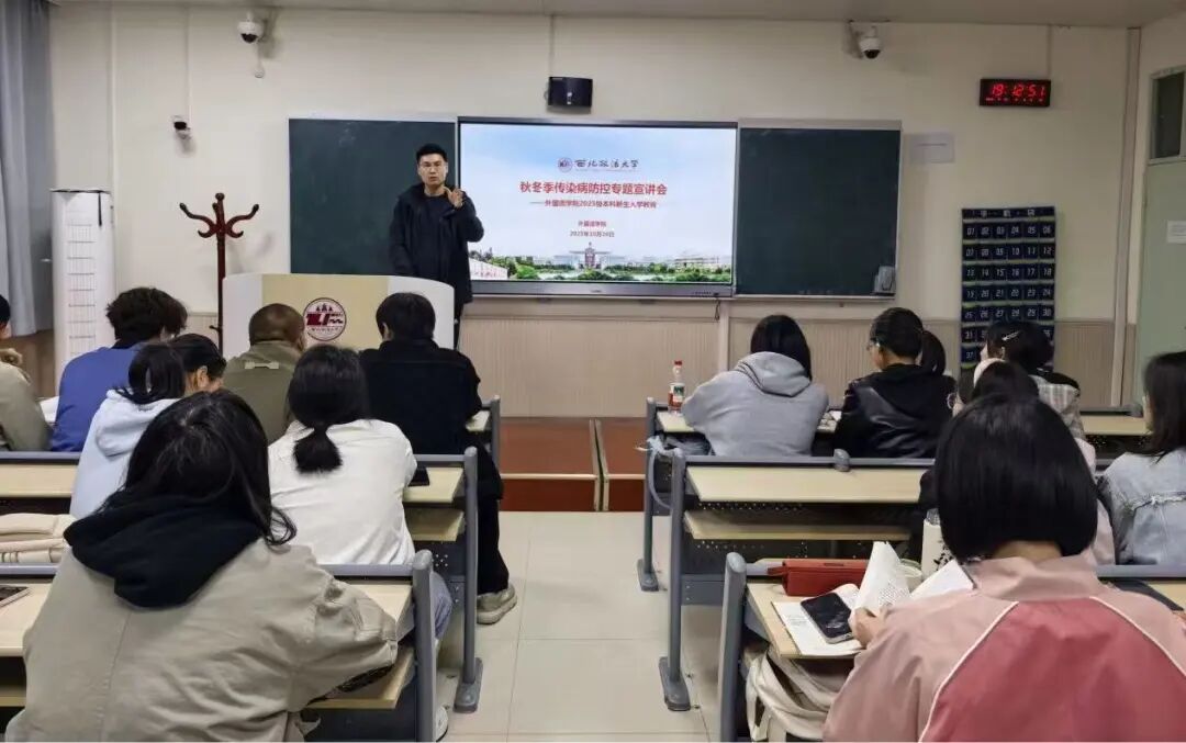 秋冬季是传染病高发季节,为进一步落实好学校秋季学期关于传染病知识与预防普及工作,提高学生对传染病的防治知识知晓率和防病意识,引导和培养学生树立良好的卫生习惯,积极主动地预防秋季传染病的发生。10月26日晚,辅导员余瑞为2025级本科全体新生开展了传染病知识与防控专题宣讲活动。