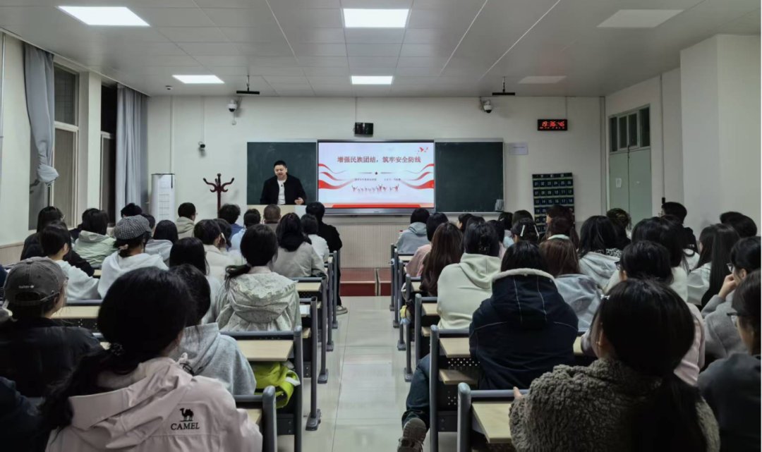 为深入推进学校民族团结进步活动月工作,增强学生国家安全意识,引导2025级新生全面铸牢中华民族共同体意识,10月27日晚,外国语学院在致知楼302教室召开“增强民族团结,筑牢安全防线”主题宣讲会。本次活动邀请国家安全学院(反恐怖主义学院)教育宣讲团成员马若愚主讲,全体2025级新生参加。