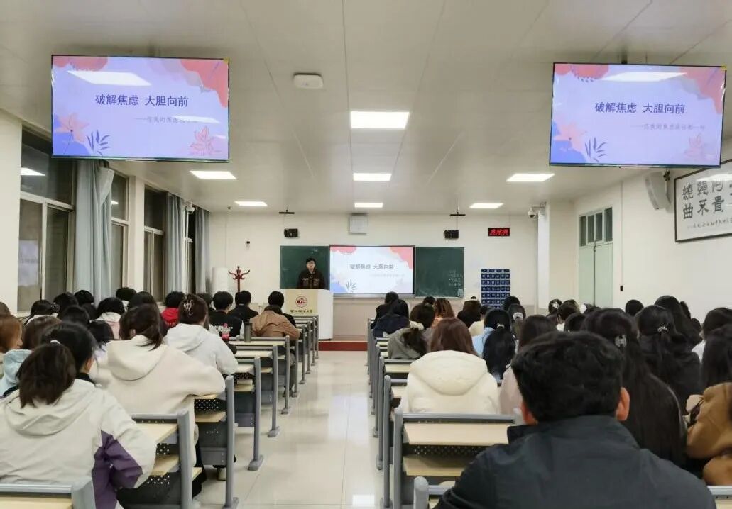 针对学生焦虑现状,张远麒提出明确建议,希望同学们聚焦自我提升,通过深耕专业知识、考取相关证书、参与实习实践等方式,增强核心竞争力,以“能力自信”替代焦虑情绪;摒弃盲目比较,引导同学们应关注自身成长历程、接纳自身不足,运用“纵向对比”思维审视进步,通过“自我肯定”消解攀比带来的焦虑;坚持身心调节,鼓励同学们通过规律运动释放心理压力,依托兴趣爱好丰富精神世界,构建“身心协同”的焦虑应对机制。