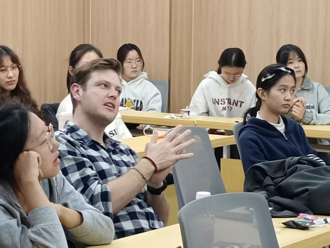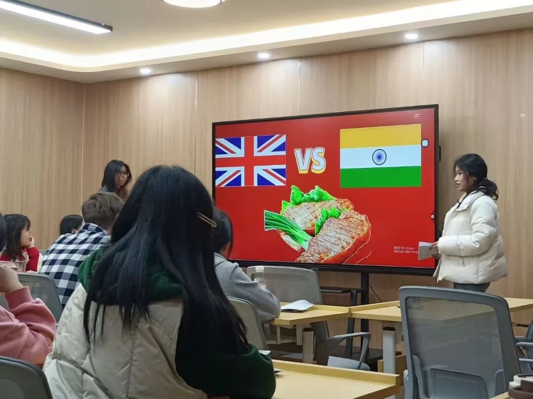 在案例研讨环节,主持人引入美国2018年《禁食猫狗肉法案》作为案例,引发同学们对“法律是否应跨越饮食文化干预饮食行为”的深入辩论。外教Cameron也积极参与讨论,他分享:“文化代表特定群体的价值与实践,强行改变他人文化是不道德的。从伦理角度看,应尊重不同文化的自主性和独特性。法律体系应由本国人民根据其文化背景自行塑造。”同学们也纷纷表达了自身对于饮食文化异同的看法,表示要尊重各地文化生活习惯、饮食文化的不同,理解各地因生活习惯不同而产生的饮食文化差异。