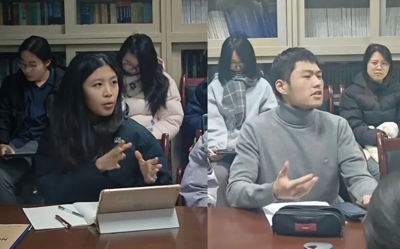 在交流环节中,2025级研究生兰俊认为本篇文献在历时性词汇演变分析及跨学科领域延伸方面仍具深化空间。2023级本科生赵怡琳聚焦于外交语境下官方话语的策略功能与建构机制,着重阐释了该议题的学术价值与现实意义。