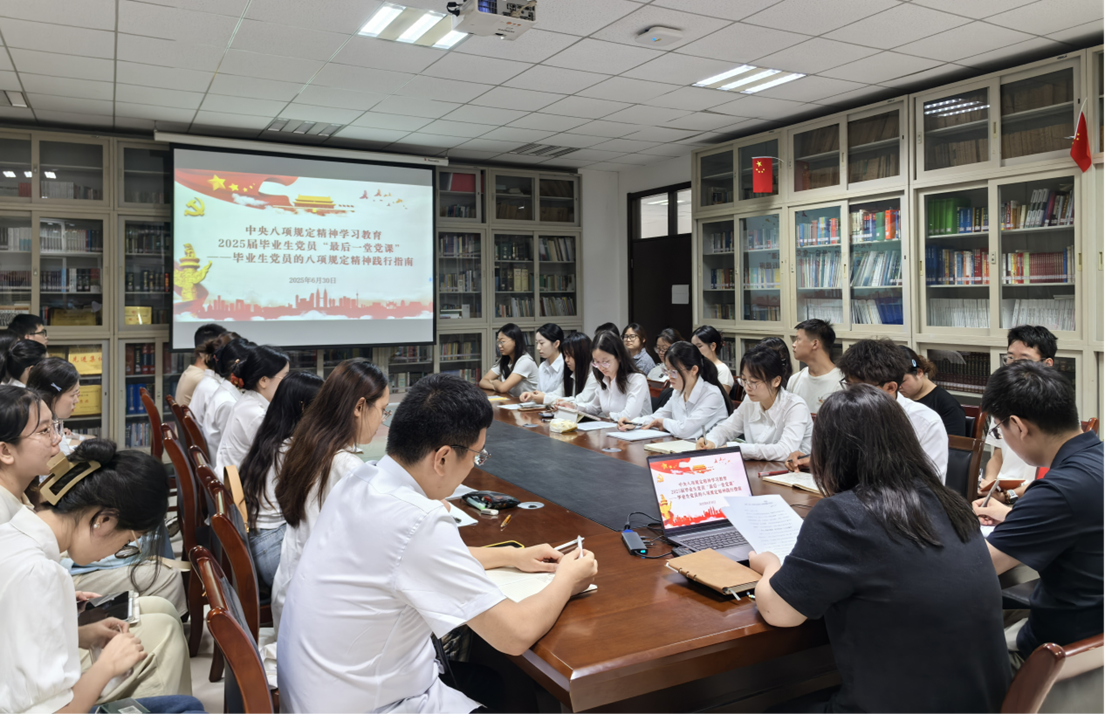 为引导毕业生党员筑牢作风建设根基,6月30日,学院党委副书记刘瑾以“中央八项规定精神”为主题,为学生第一党支部毕业生党员讲授毕业前的最后一次专题党课,助力他们系紧走向社会的“第一粒扣子”。 刘瑾从“职场起步的‘护身符’”“成长路上的‘导航仪’”“初心使命的‘践行证’”三个方面,阐述了中央八项规定精神与毕业生党员的“三重联结”。她指出,对于即将离校的毕业生党员而言,这一精神不是抽象的“文件要求”,而是看得见、用得上的“人生方法论”,教会大家如何在诱惑面前站稳脚跟,在浮躁之中保持清醒,在干事创业时坚守初心。 在践行中央八项规定精神方面,她对毕业生党员提出了四点要求:一是职场上做“靠谱的人”,面对利益诱惑时守得住底线,遇到难题时扛得起责任,用扎实的行动力赢得信任;二是交往中做“清醒的人”,面对“关系网”“潜规则”敢于亮明立场,用清爽的交往观守护初心;三是生活中做“朴素的人”,把“勤俭节约”过成日常习惯,不盲目攀比物质、不追求奢靡享乐,用简约的生活态度涵养正气;四是家庭里做“带头的人”,把“廉洁家风”融入家庭日常,不利用身份谋特殊、不借职务之便图私利,用自身言行带动家人共守清廉,让小家成为作风建设的坚固阵地。 此次活动不仅是一堂生动的党性教育课,更为毕业生党员们即将开启的新征程注入了强大的精神动力。毕业生党员们纷纷表示,将带着这堂党课的“叮嘱”,让“清风正气”成为人生行囊里最珍贵的“行李”,在实现个人梦想的同时,为党和人民的事业添砖加瓦。